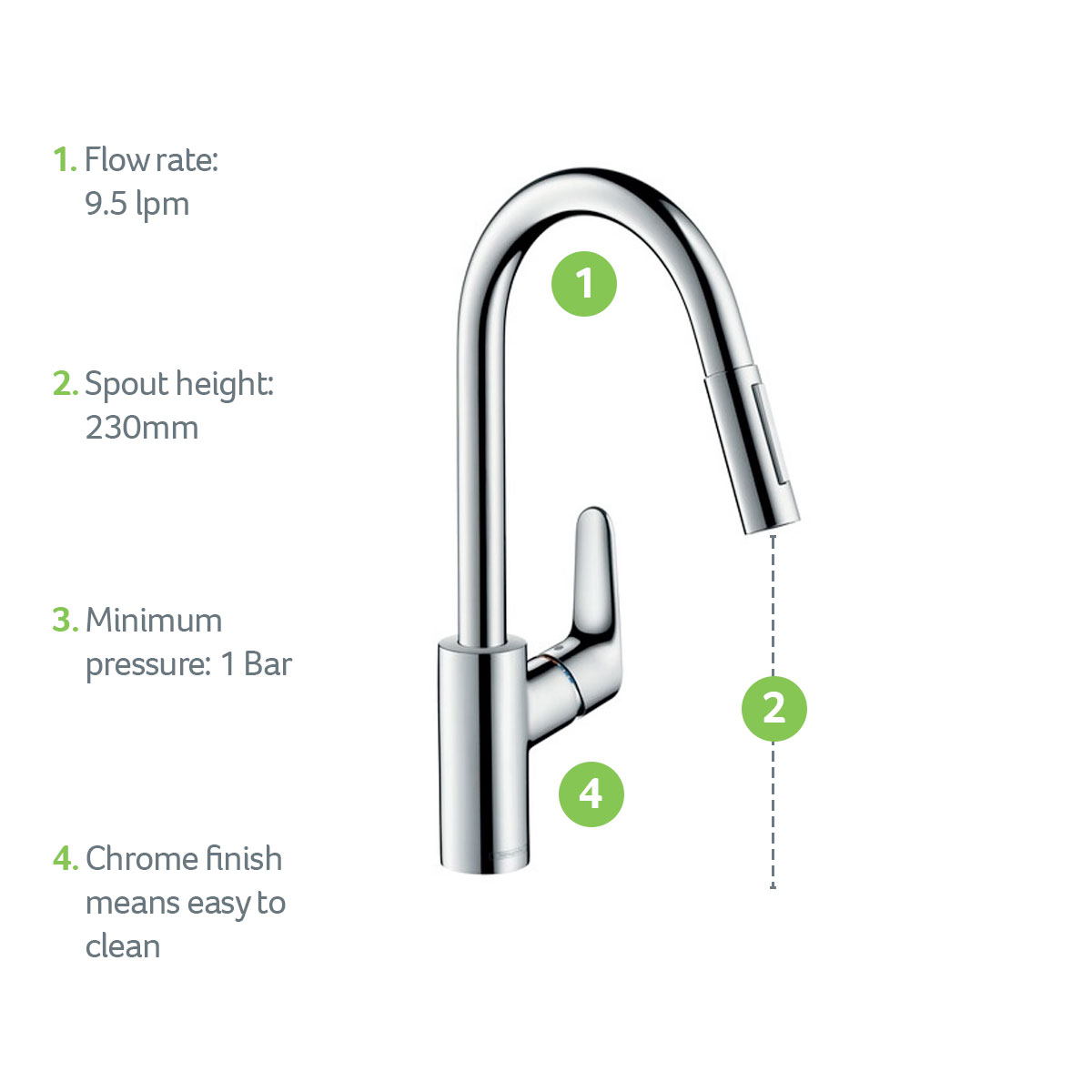 Hansgrohe Focus With Pull Out Spray Single Lever Swivel Spout 240 Chrome Kitchen Mixer